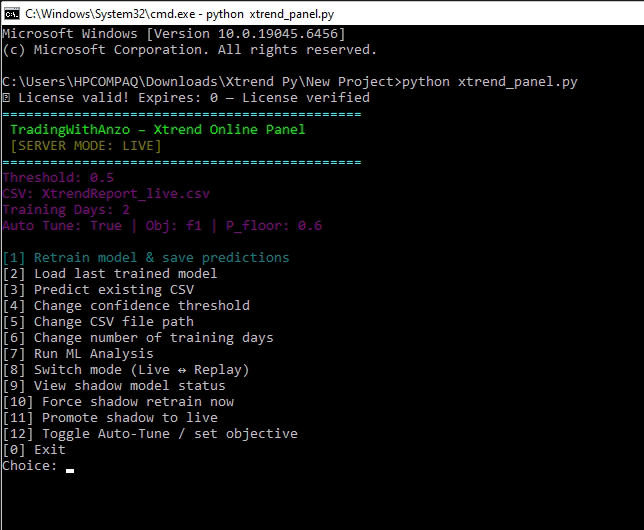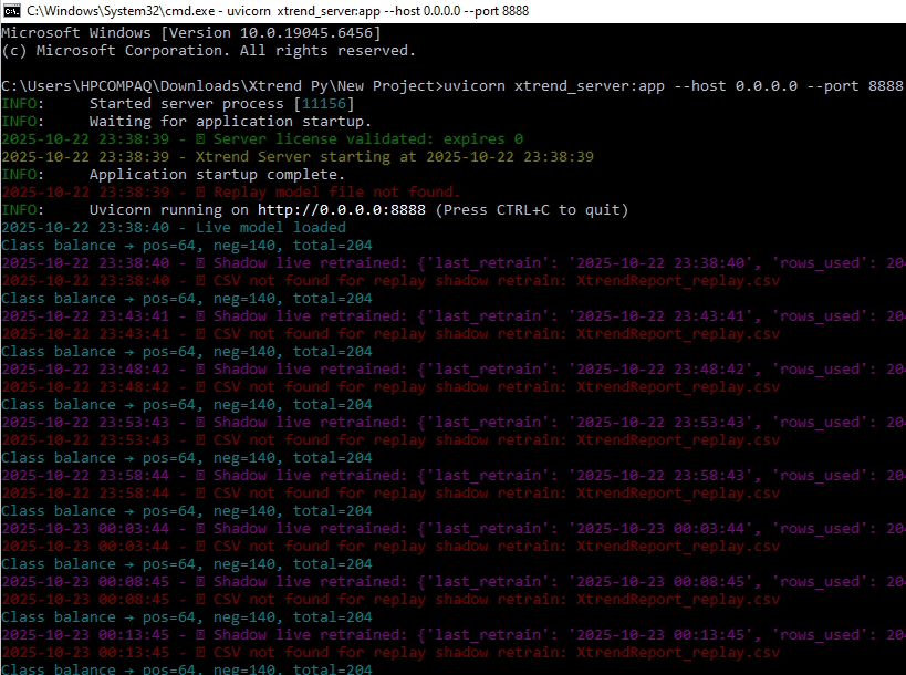| Xtrend Panel | Controls retraining, analysis, and threshold tuning |